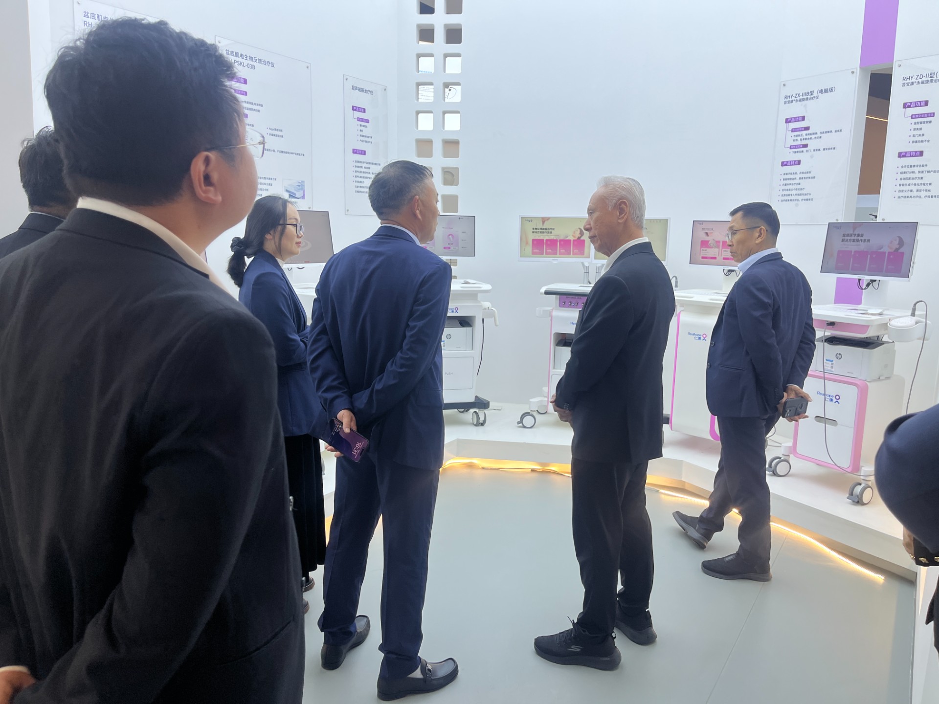 随后,商会一行近距离观摩并深度体验了仁惠医疗自主研发的男科、妇科全系列高端理疗设备,逐一了解产品核心技术、临床疗效、学术应用及市场覆盖情况。从核心磁振磁电治疗技术的突破,到上万例临床应用数据的沉淀;从国内两千余家医疗机构的广泛装机,到远销海外的国际化市场布局,仁惠医疗坚持自主创新、专注临床价值的匠人精神,让到访嘉宾频频驻足、由衷赞叹。