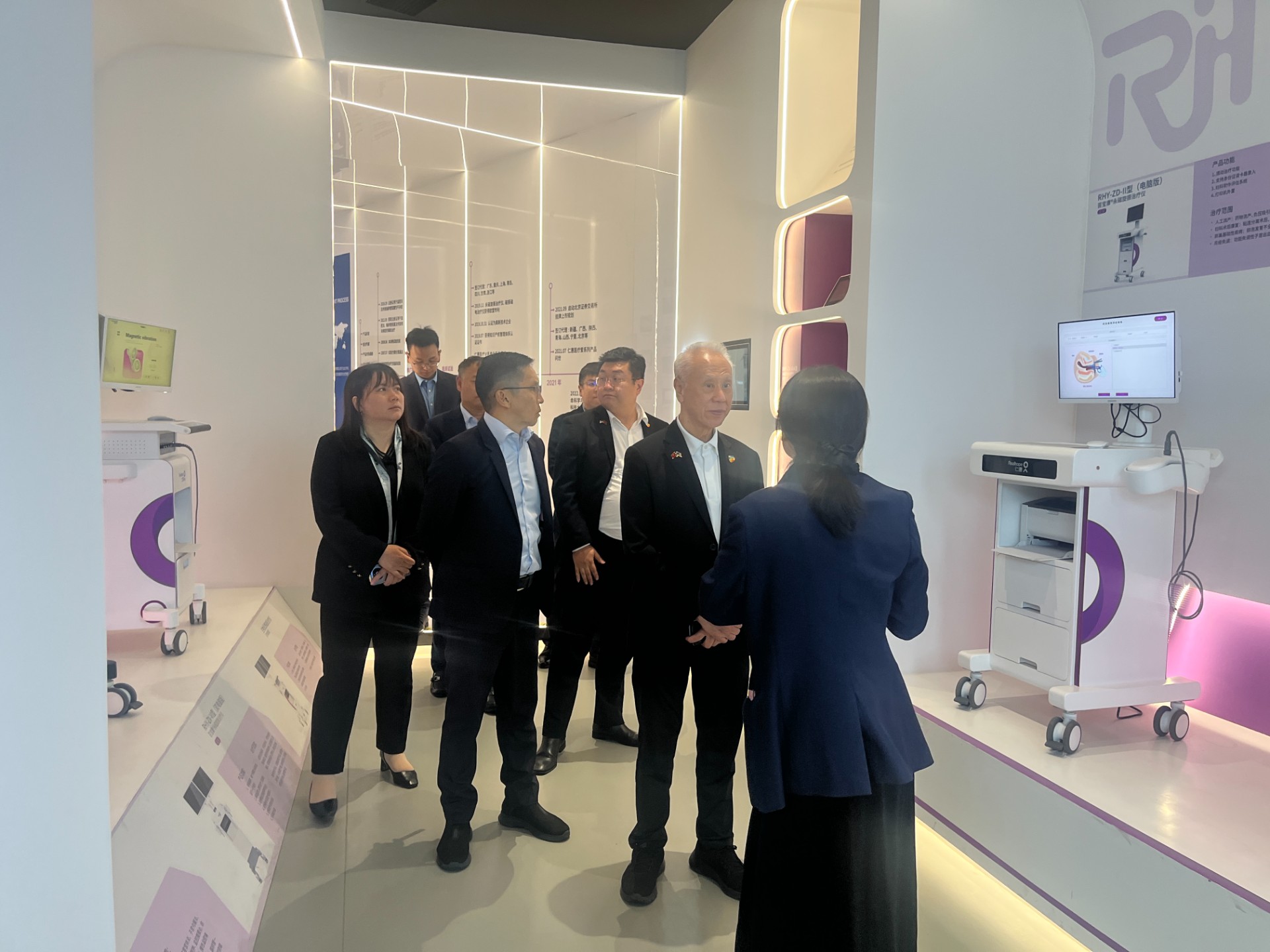 商会一行首先走进仁惠医疗企业展厅、科研成果展示区与产品体验中心,全方位感受企业发展底蕴。在企业发展文化墙前,仁惠工作人员详细介绍了仁惠医疗十余载深耕生殖康复医疗领域的发展历程、科研荣誉、专利成果与国内外、国外市场布局,过硬的综合实力获得来访嘉宾的高度认可。